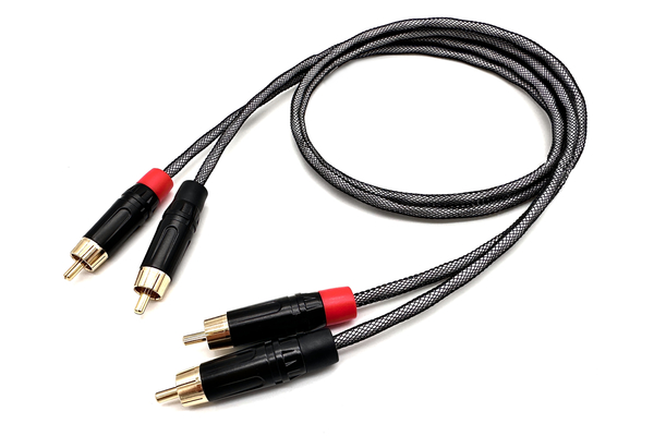 Кабель межблочный 2RCA-2RCA, посеребренный, экранированный, длина 1м, черный