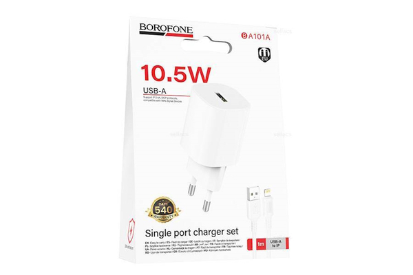 СЗУ на USB BOROFONE BA101A + кабель Lightning, белый