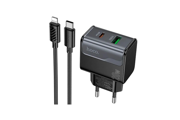 СЗУ на PD+USB (гнездо Type-C) HOCO CS71A, 20W, QC3.0 + кабель Type-C - Lightning, черный