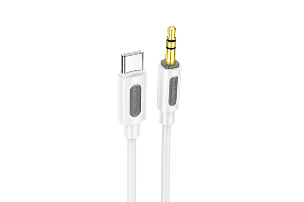 Кабель AUX, Jack 3,5mm(m) - Type-C(m) Borofone BL20 True, 1.0м, круглый, силикон, цвет: белый