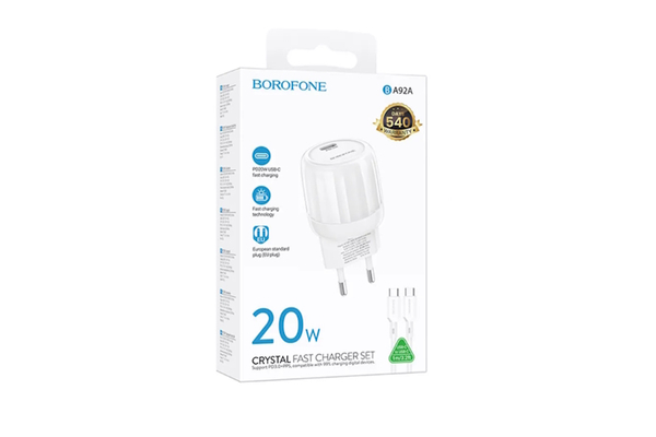 СЗУ на PD Borofone BA92A QC3.0, PD20Вт + кабель Type-C - Type-C белый