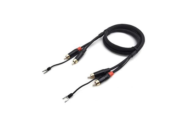 Фонокабель, для подключения тонарма, 2RCA - 2RCA + заземляющий кабель, в оплетке, длина 2м, ART-06